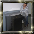 "Manuel Lozano, pensativo, junto al xinofón de Canaro" - (Foto de Dominique Destraud, 7-V-2009) |