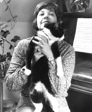 "María Elena Walsh, su pequeño tigre, y piano" - (Circa 1970) |