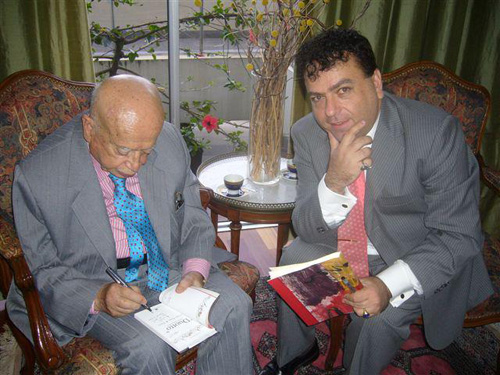 Gonzalo Rojas -Premio Cervantes- con Manuel Lozano - (Foto: gentileza de la Embajada de Chile en Argentina) |