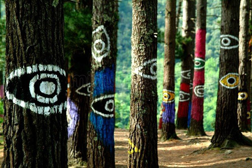 "Bosque de Oma, pintado por Agustín Ibarrola" |